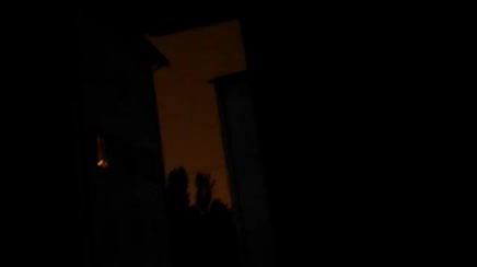dopo il torido caldo eco temporale che colora cielo do rosso con fulmini