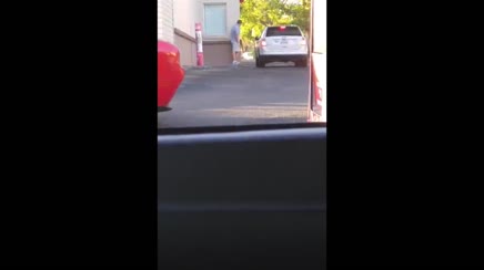 Si acquatta dietro l’angolo e poi ruba il cestino al McDrive
